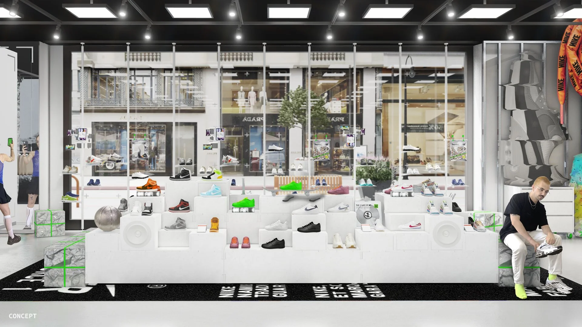 All These Wonders partnered with Nike to provide architectural studies for both exterior and interior retail experiences, including facade, windows, initiative zone, footwear experience, and cash wrap. Through quick conceptual studies, we explored issues of materiality and lighting and developed the essence of these key moments.